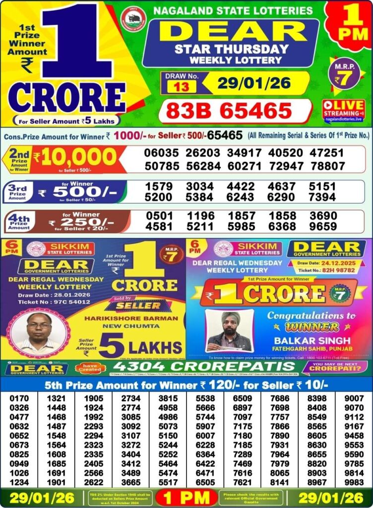 | Dhankesari Lottery 1pm | Dear Tender Morning |