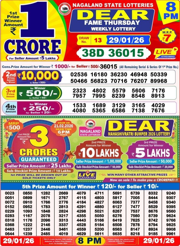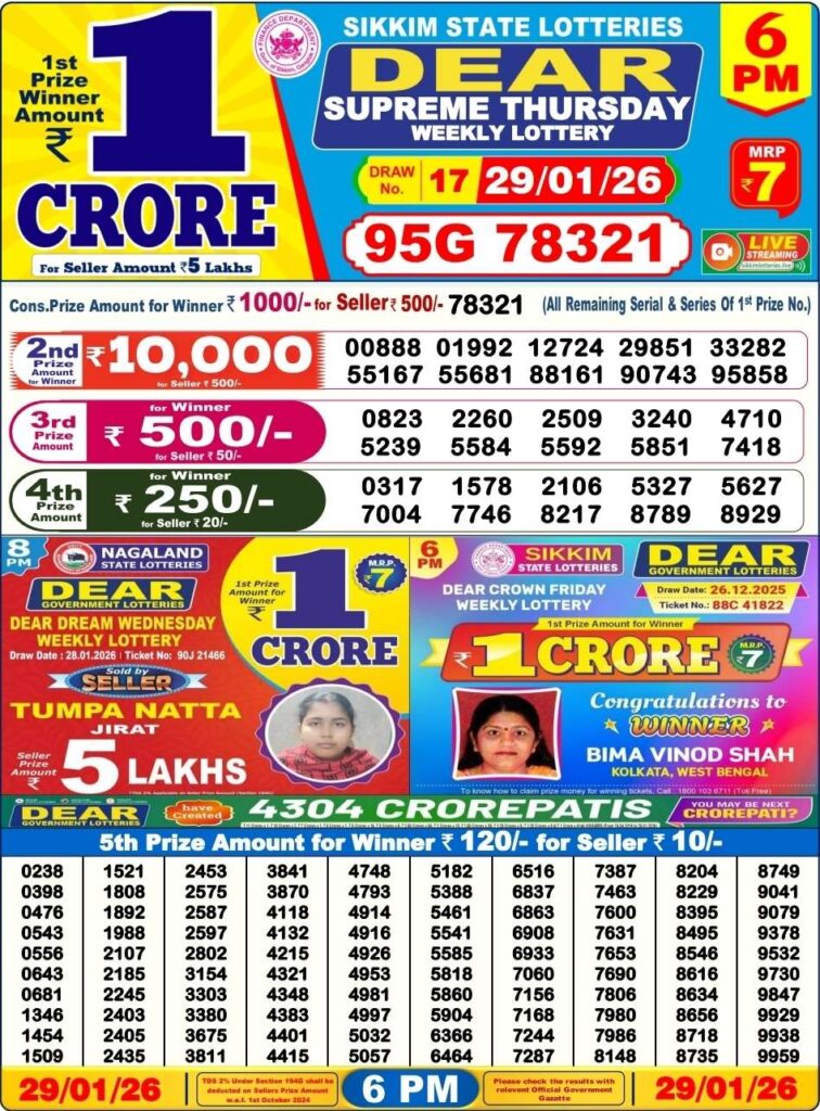 | Today Lottery Name | Dear morning, Dear day and Dear evening |