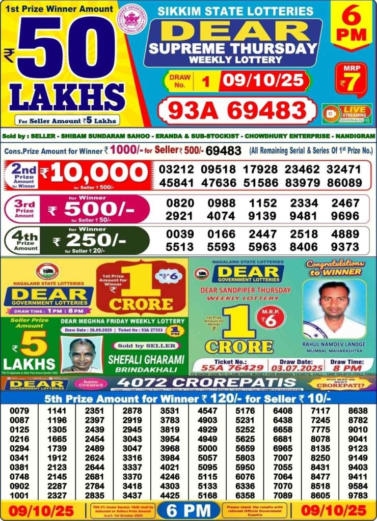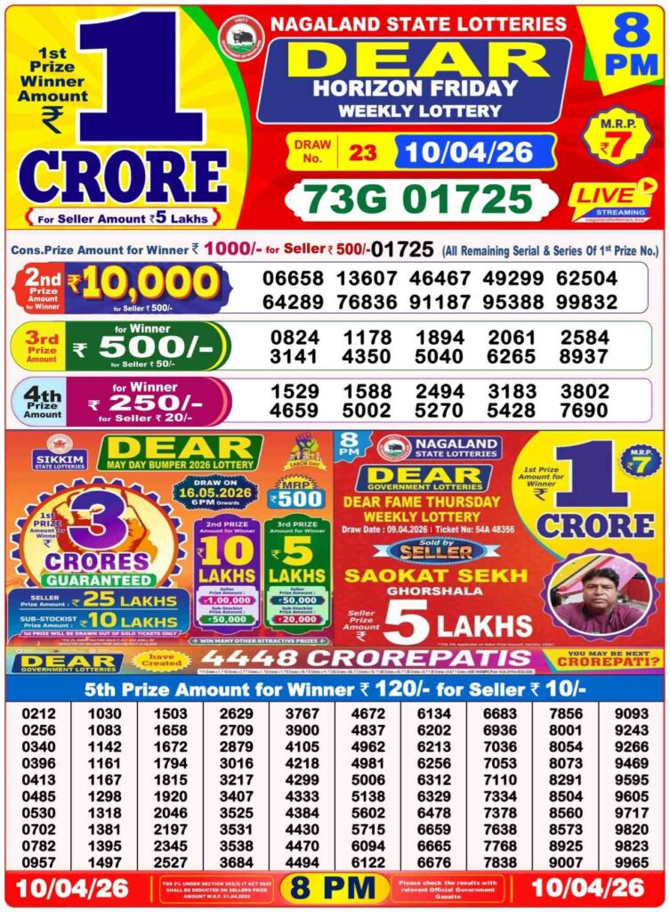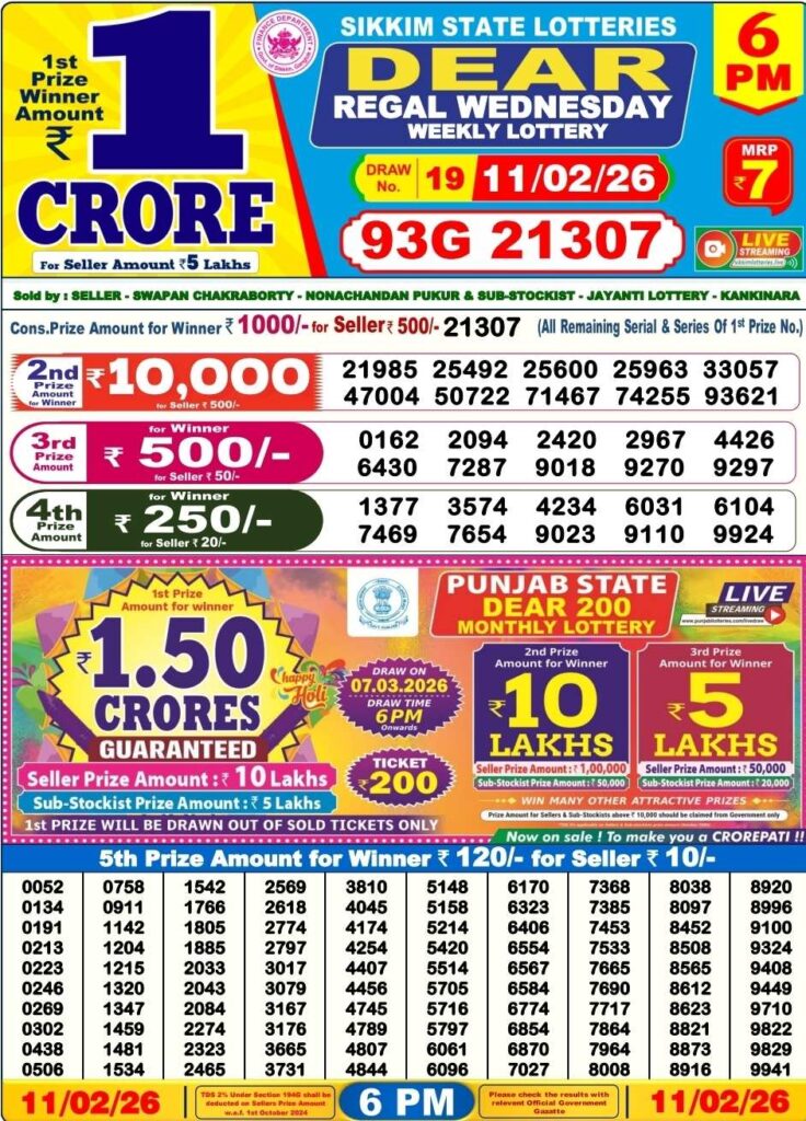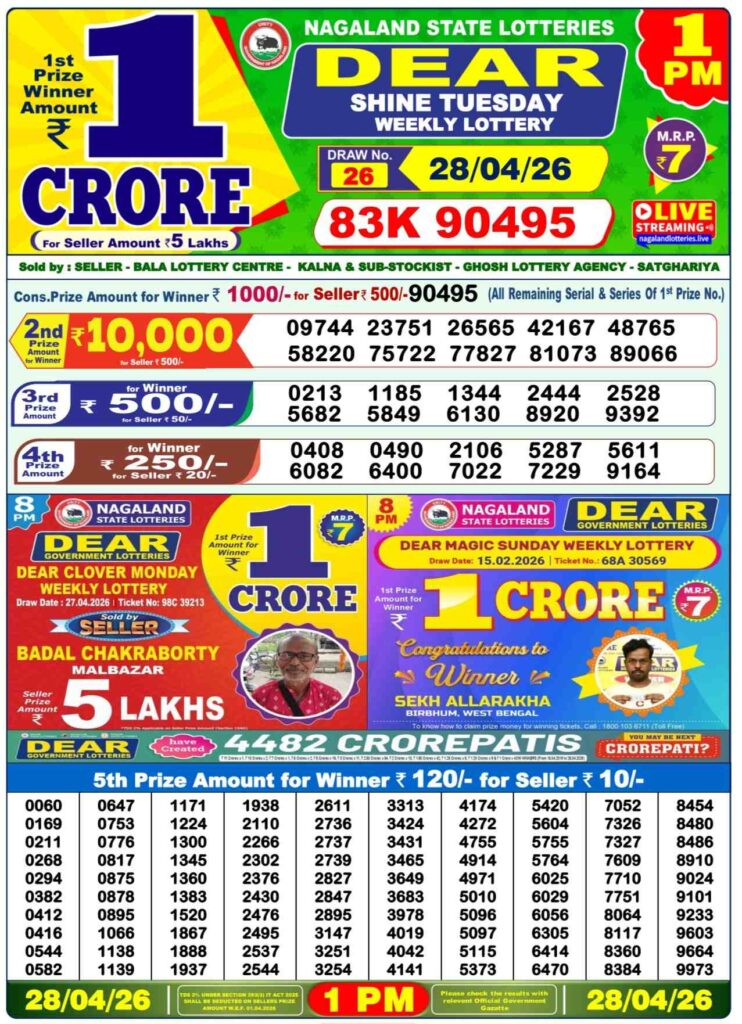 There are three lotteries that will be held today. The first one begins at 11:55 AM, the second one will be at 4:00 PM and the final one is at 8:15 pm. The results are all updated in flash on the upper right of this page. Dhankesari results for today’s winners are announced, and you can see the draws results here.