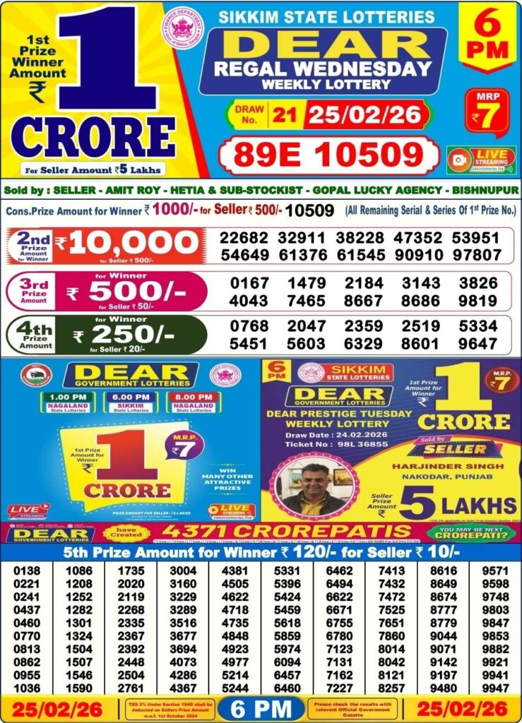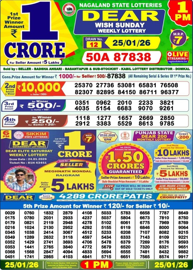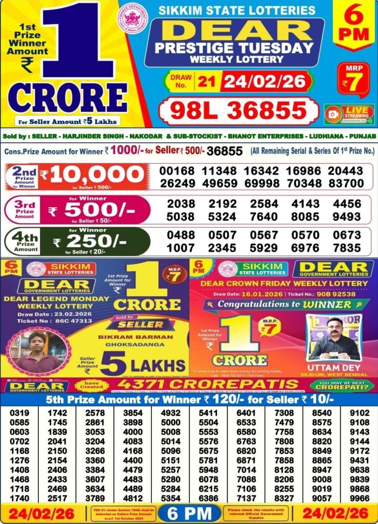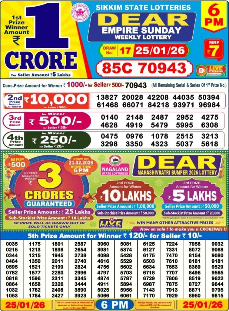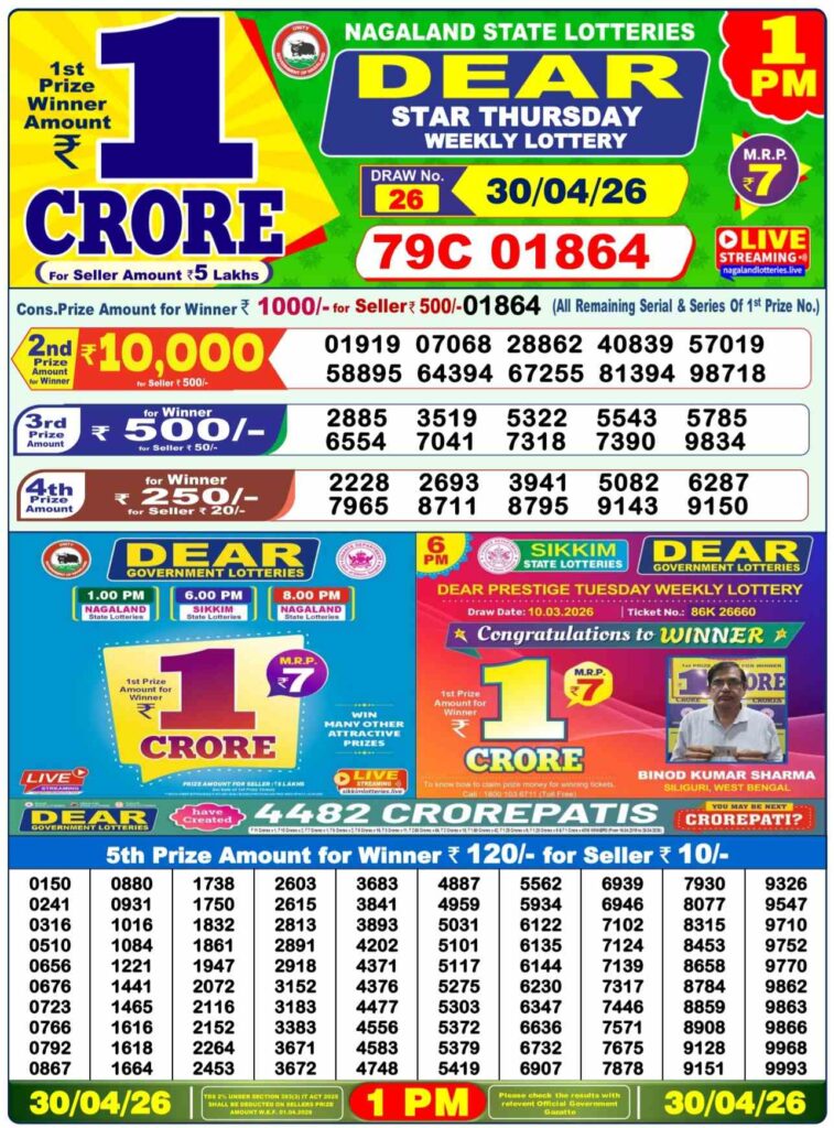 | Today Lottery Name | Dear morning, Dear day and Dear evening |