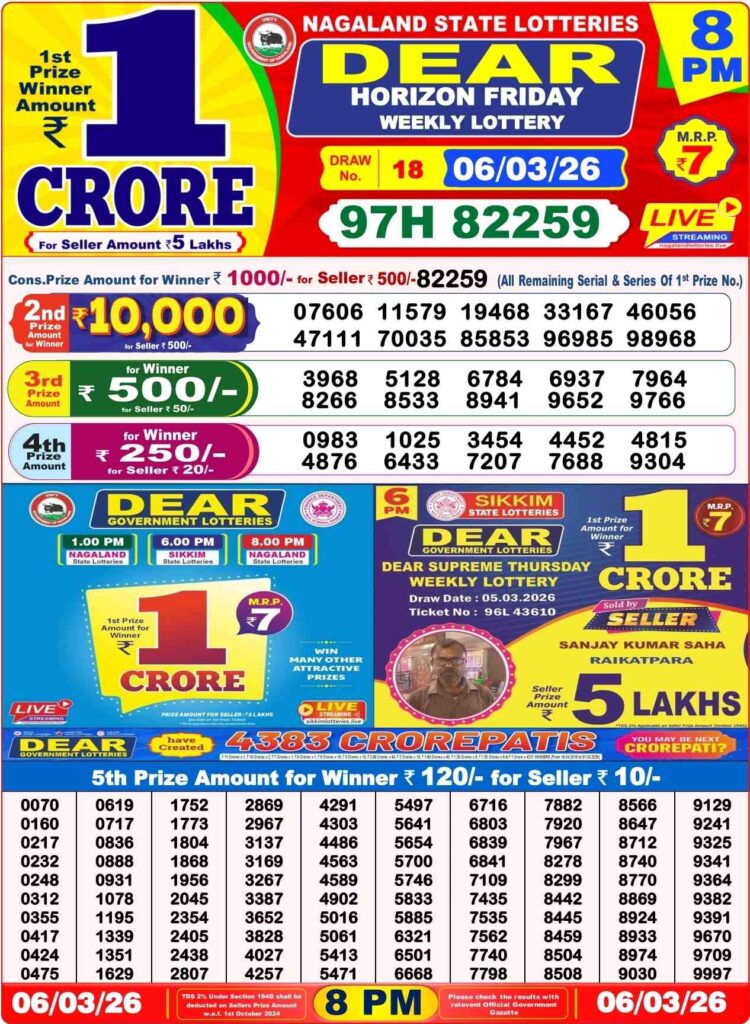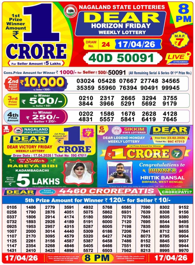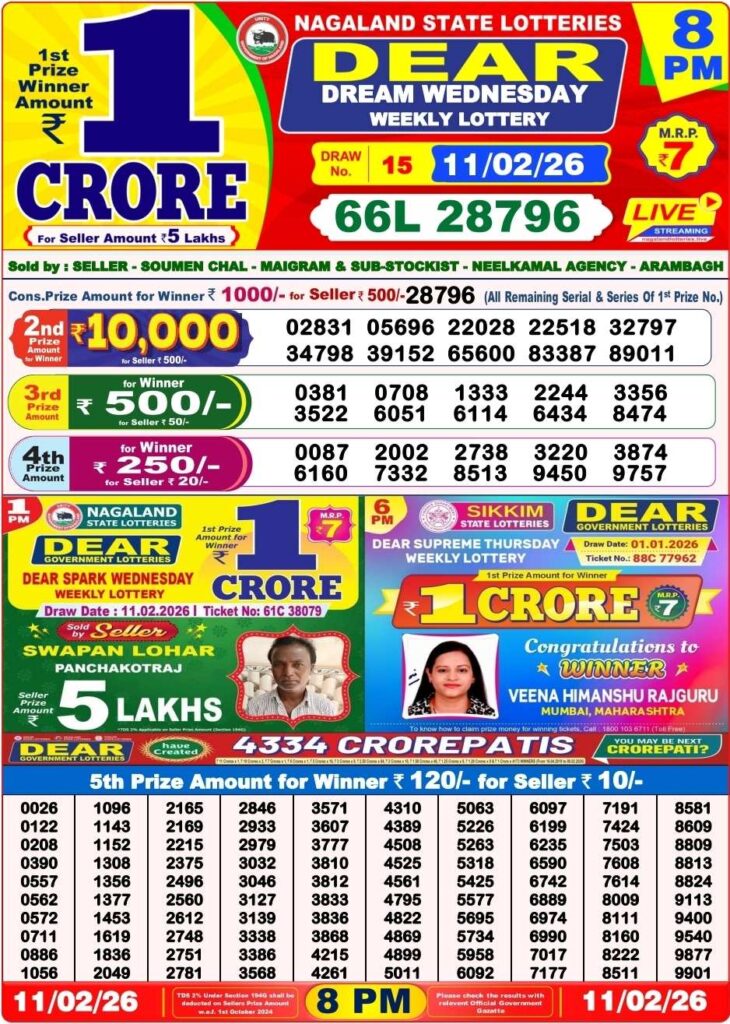 Dhankesari Lottery Sambad result for evening is the result for the day’s last draw that will be published in our site at 8:10 pm and the live results will begin at 8pm. dear readers, it’s one of the top selling lottery results. Sambad dhankesari which is mostly a lottery tickets from west Bengal. those who are searching for the lottery in the state of Nagaland. lottery is 8pm. Lottery Sambad