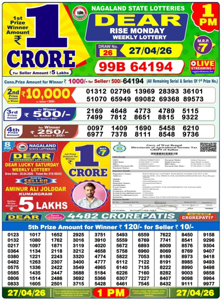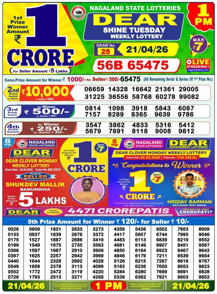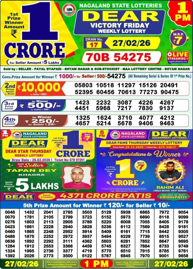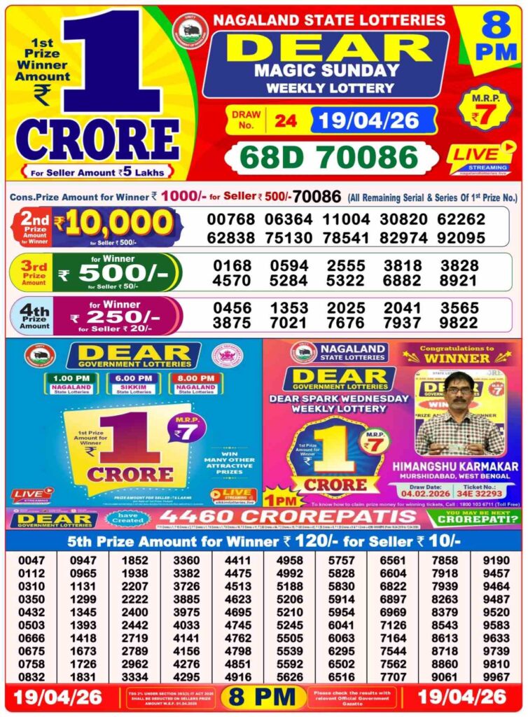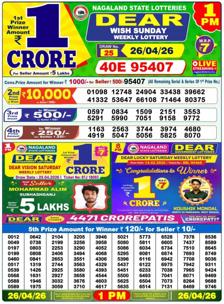 Nagaland State Lottery Prize lists