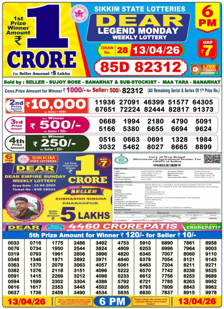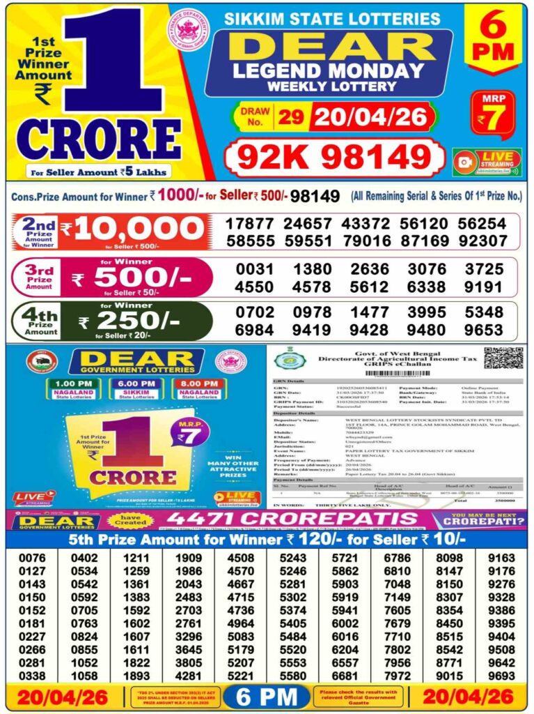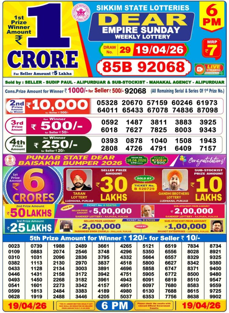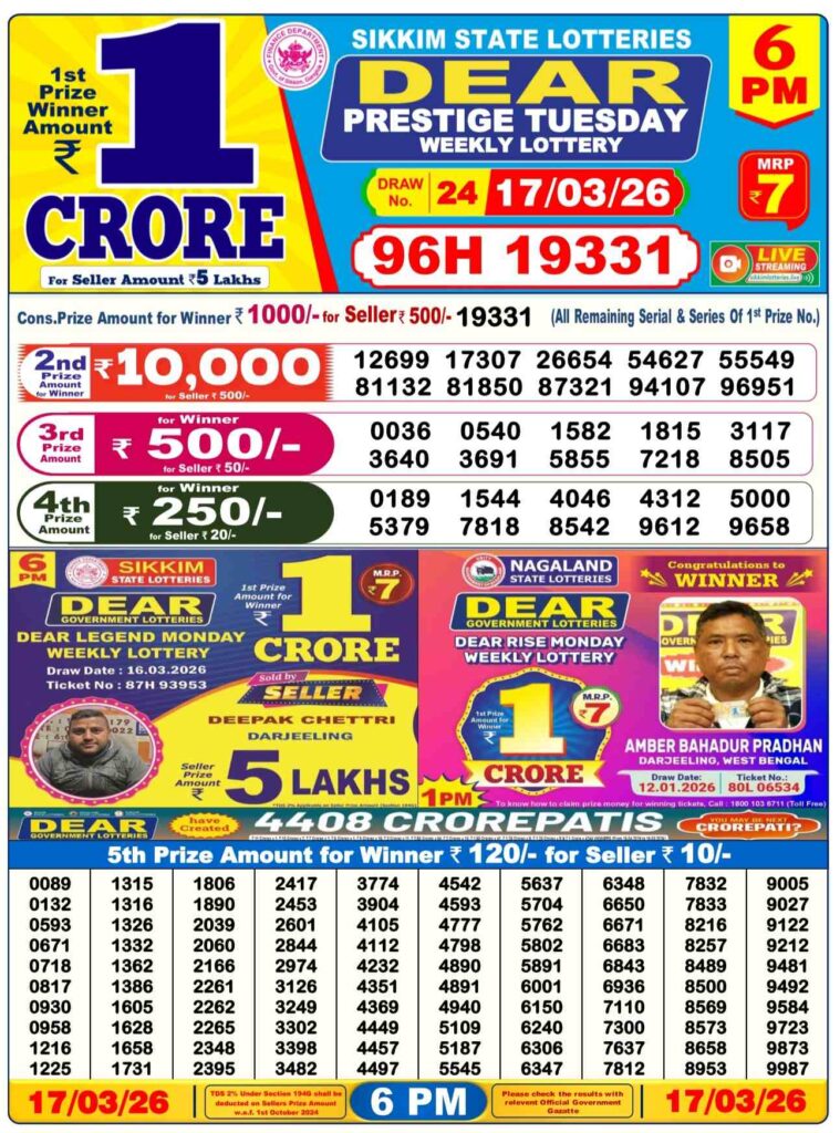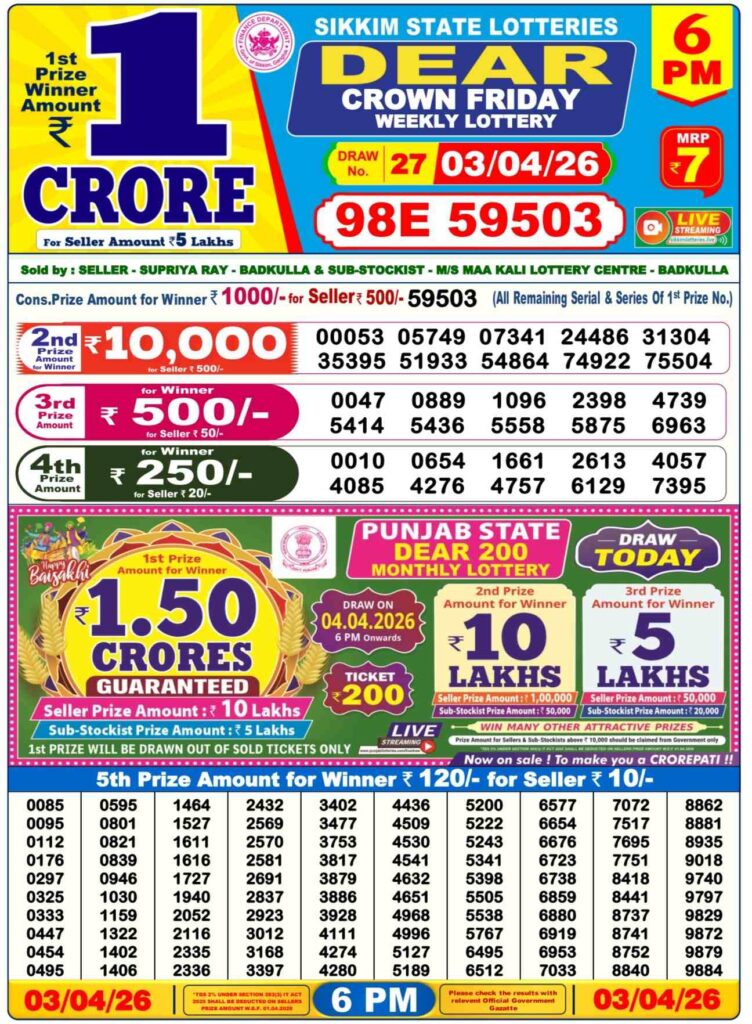 Dhan Kesari lottery results today in the morning result is the 1st day’s result and is very well-known in its results. The result will be announced at 12:10pm, but the live stream will start at 11:55 am, which is why it’s called dhankesari early morning results. Morning results are also known as sikkim state lottery results.