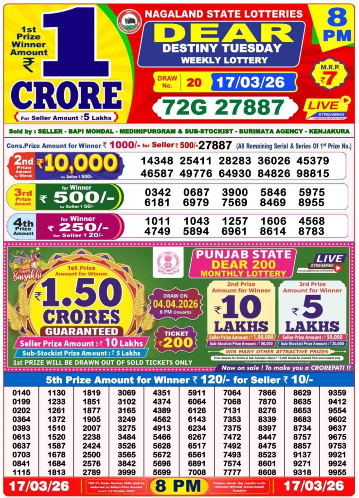 | Dhankesari Lottery State | West Bengal, Nagaland |