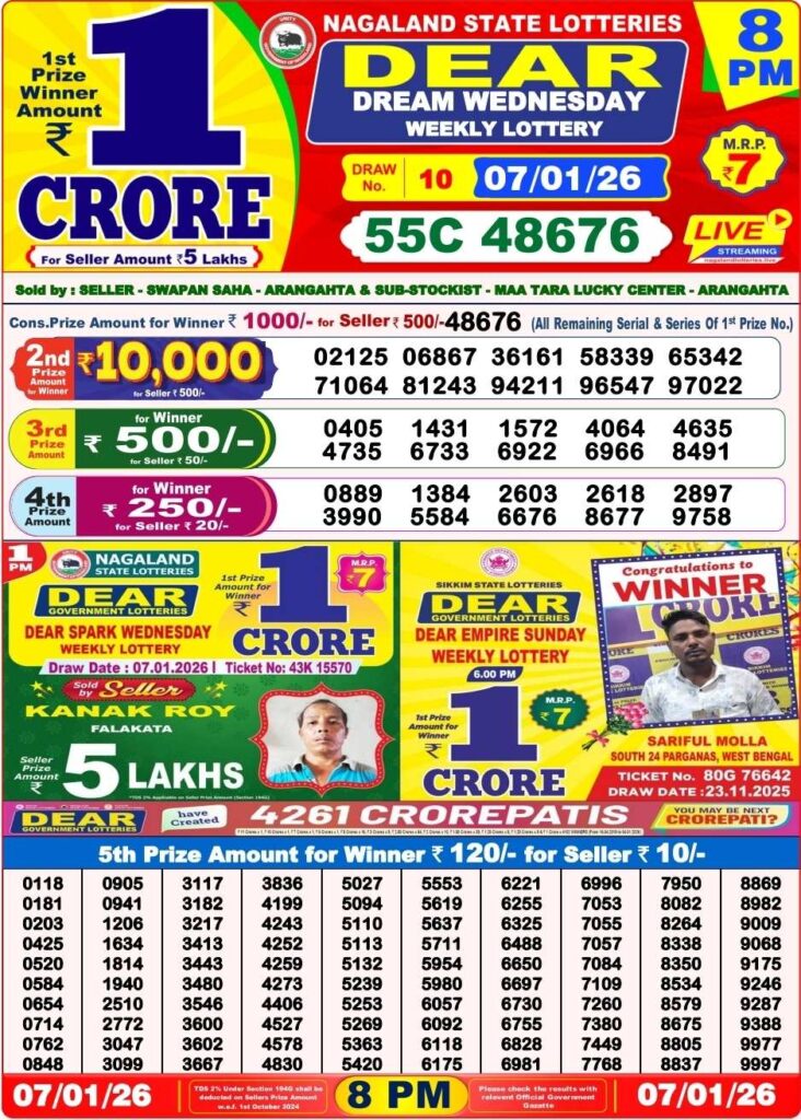 Nagaland State Lottery 8PM 8.1.2026 Results Dhankesari Evening: Good evening dear friends there you are in this popular webiste which has been told to be as Dhankesari today result and friends you know that this webiste can be updated with the latest lottery sambad results and dear friends you know that there this detailed post which has been updated with latest Nagaland state lottery 8pm evening result and its the day of another lucky morning of Friday 5th of April 2024 so todays sambad lottery can it be always known as Nagaland state lotteries DEAR VULTURE EVENING and there you will gets the result at 8:10pm so my dear friends getting ready for the days all lottery sambad results and friends all the posts been updated with the latest Sikkim state lottery, West Bengal state lottery, Nagaland state lottery, lottery sambad results and Dhankesari.