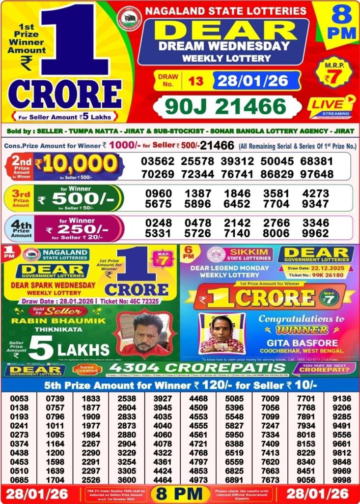 Nagaland State Lottery 8PM 28.1.2026 Results Dhankesari Evening: Good evening dear friends there you are in this popular webiste which has been told to be as Dhankesari today result and friends you know that this webiste can be updated with the latest lottery sambad results and dear friends you know that there this detailed post which has been updated with latest Nagaland state lottery 8pm evening result and its the day of another lucky morning of Friday 5th of April 2024 so todays sambad lottery can it be always known as Nagaland state lotteries DEAR VULTURE EVENING and there you will gets the result at 8:10pm so my dear friends getting ready for the days all lottery sambad results and friends all the posts been updated with the latest Sikkim state lottery, West Bengal state lottery, Nagaland state lottery, lottery sambad results and Dhankesari.