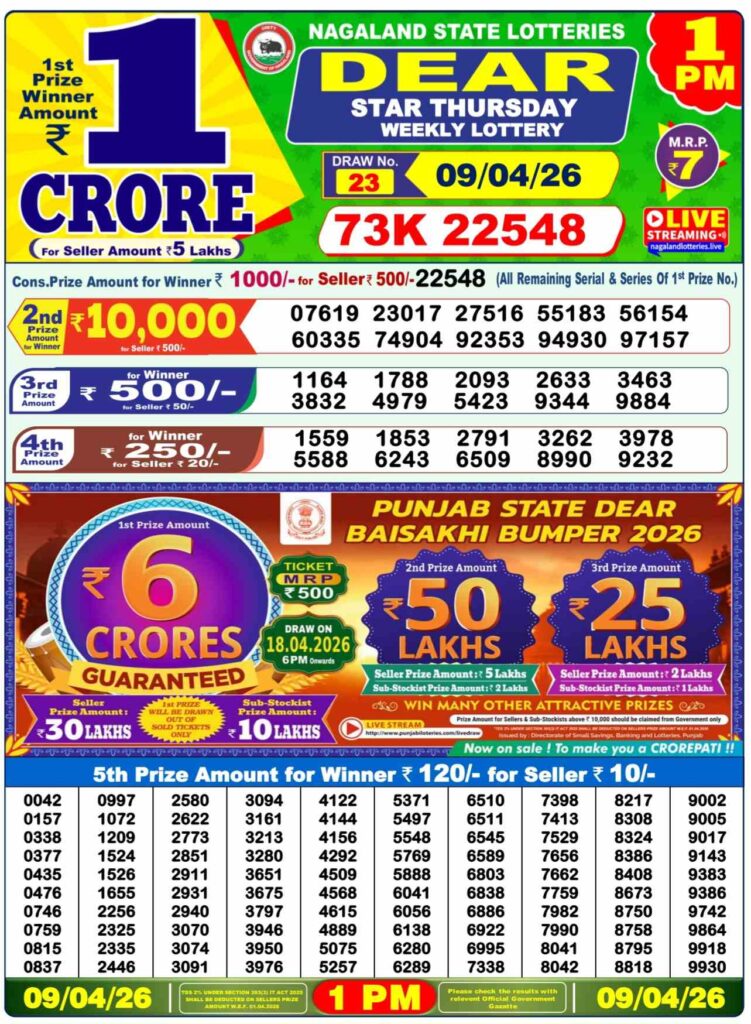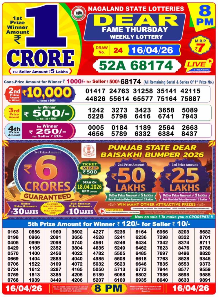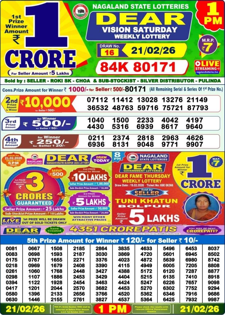 Nagaland State Lottery Prize lists