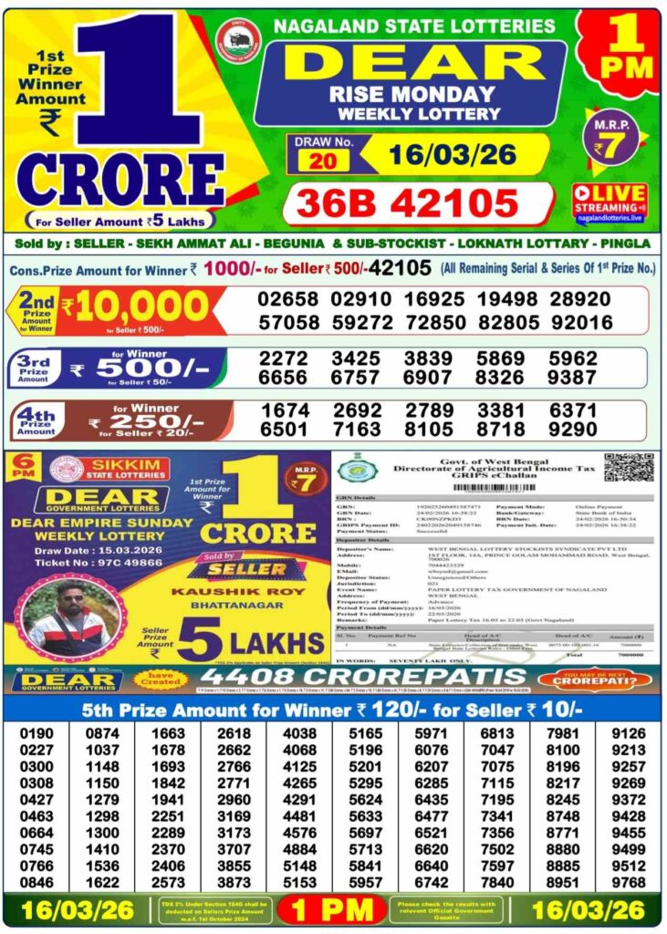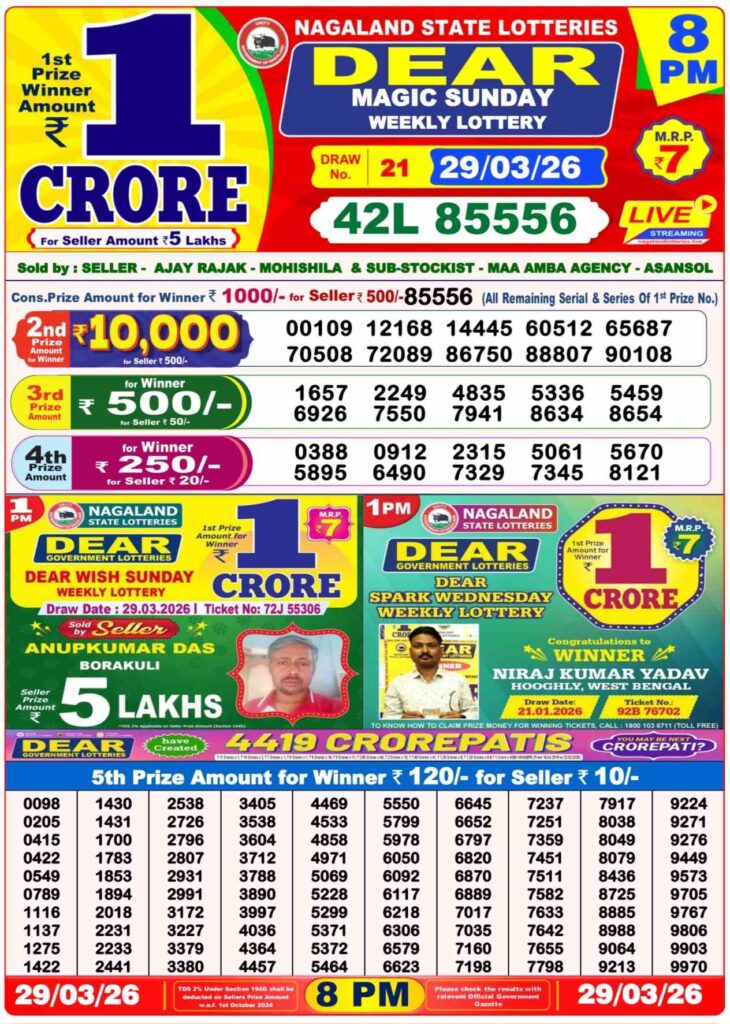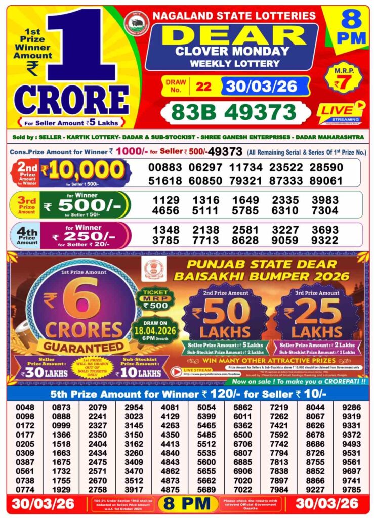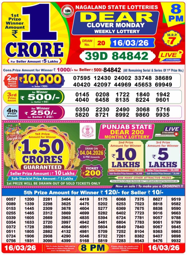 Dhankesari Lottery Sambad result for evening is the result for the day’s last draw that will be published in our site at 8:10 pm and the live results will begin at 8pm. dear readers, it’s one of the top selling lottery results. Sambad dhankesari which is mostly a lottery tickets from west Bengal. those who are searching for the lottery in the state of Nagaland. lottery is 8pm. Lottery Sambad