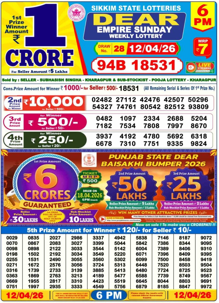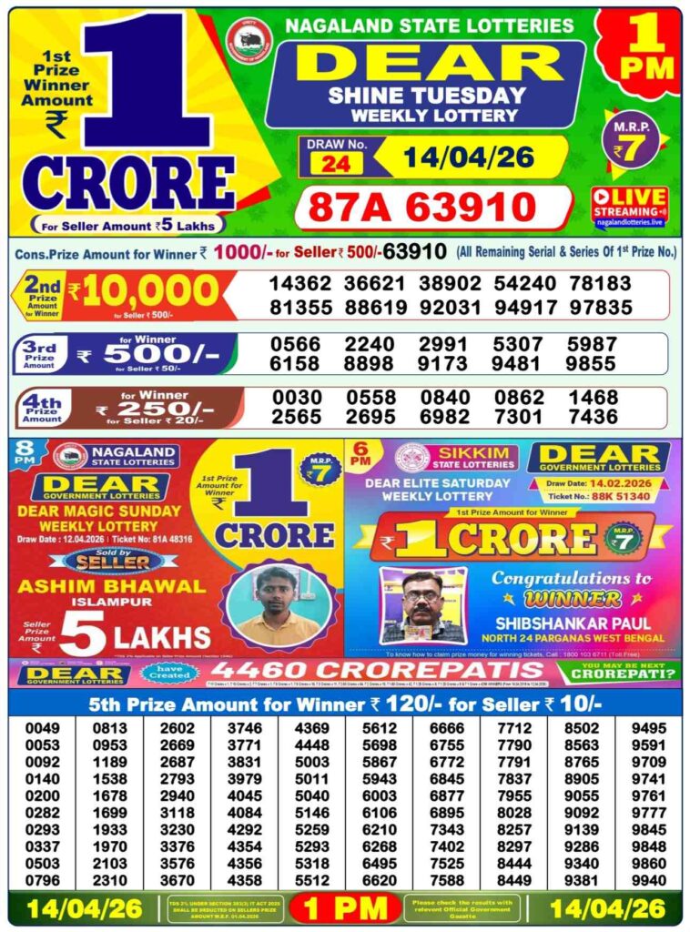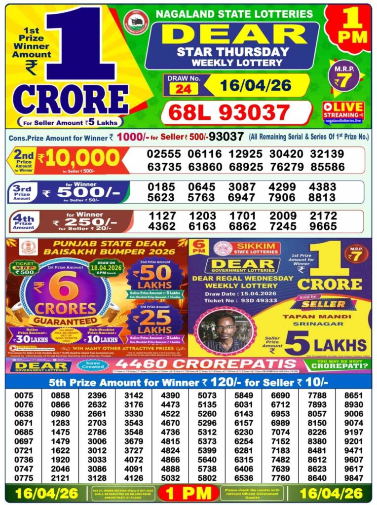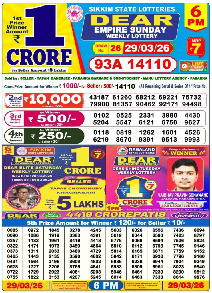 There are three lotteries that will be held today. The first one begins at 11:55 AM, the second one will be at 4:00 PM and the final one is at 8:15 pm. The results are all updated in flash on the upper right of this page. Dhankesari results for today’s winners are announced, and you can see the draws results here.
