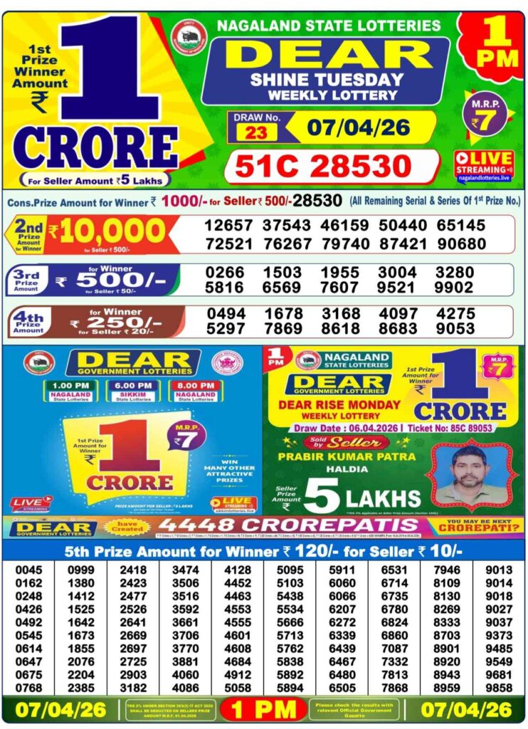 | Dhankesari Lottery 1pm | Dear Tender Morning |