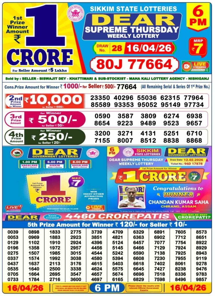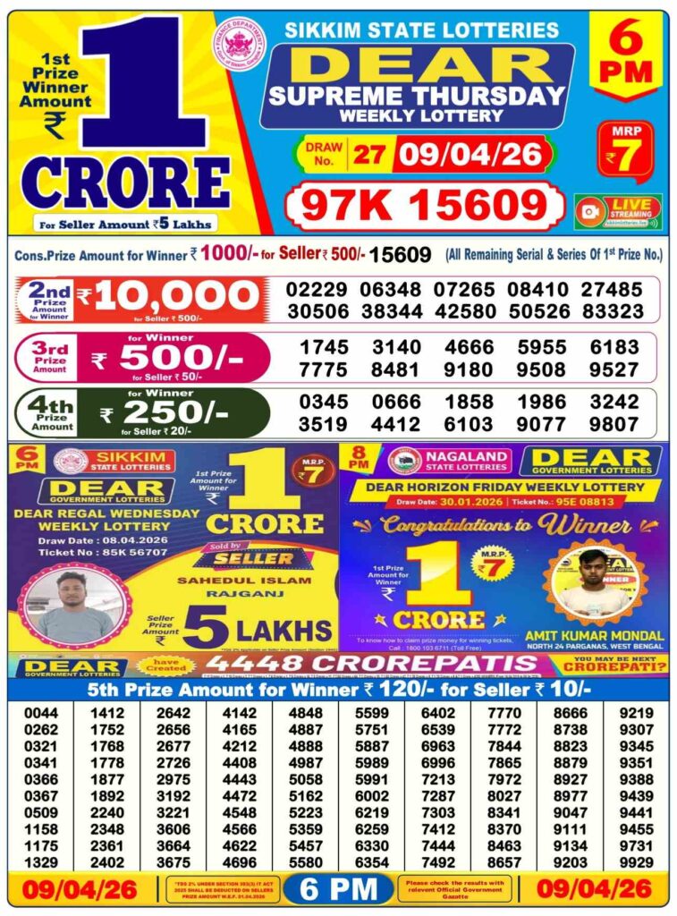 Dhan Kesari lottery results today in the morning result is the 1st day’s result and is very well-known in its results. The result will be announced at 12:10pm, but the live stream will start at 11:55 am, which is why it’s called dhankesari early morning results. Morning results are also known as sikkim state lottery results.