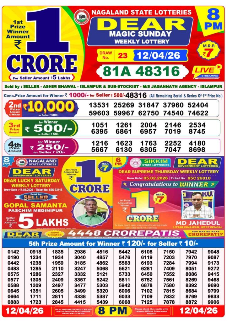 | Dhankesari Lottery State | West Bengal, Nagaland |