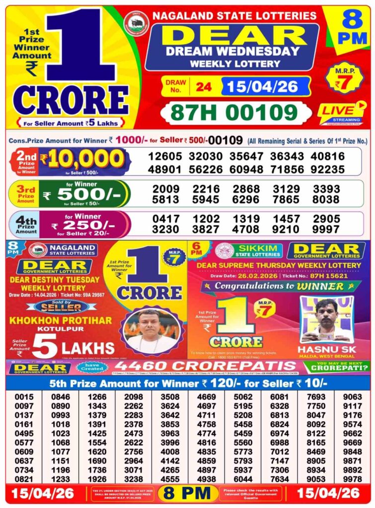 | Today Lottery Name | Dear morning, Dear day and Dear evening |